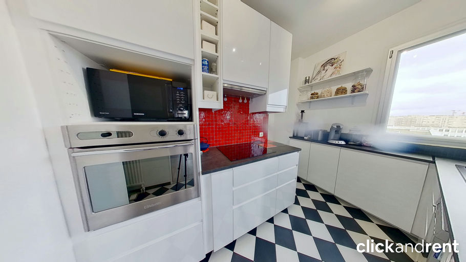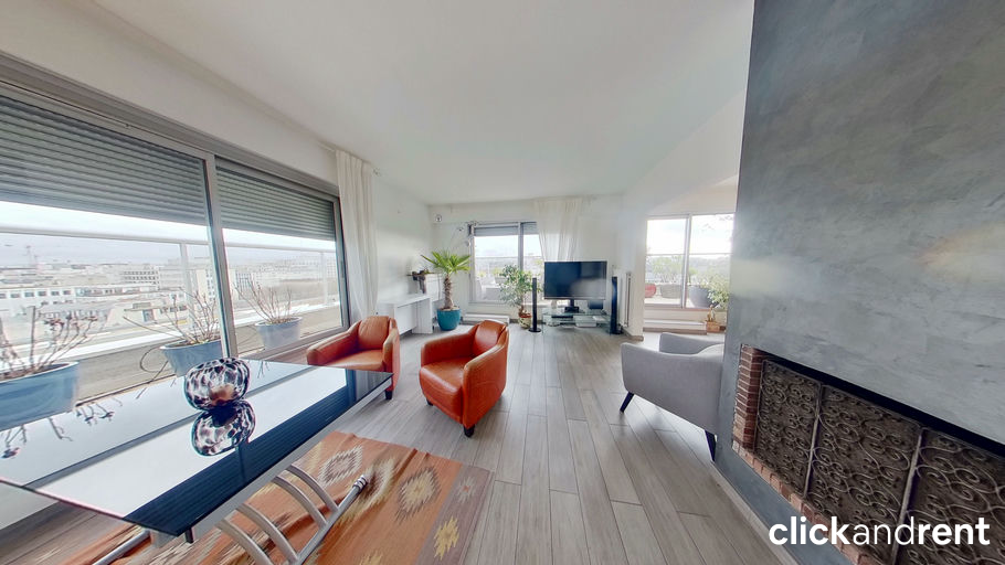 L’appartement dispose d’un grand séjour avec cheminée fonctionnelle donnant sur une terrasse de 30 m² orientée sud, parfaite pour profiter des beaux jours en plein cœur de Paris. La cuisine équipée inclut four, plaques, hotte, réfrigérateur, micro-ondes, lave-linge et lave-vaisselle pour un confort optimal.
