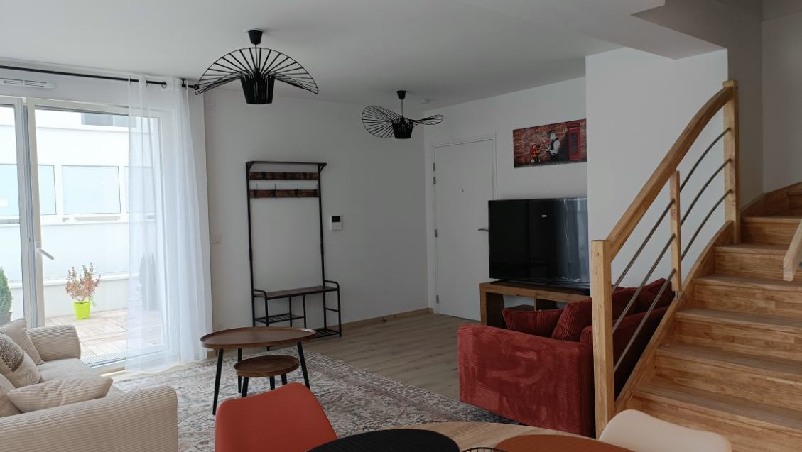 Appartement meublé de 89 m², composé de 4 chambres, réparti sur les 3ᵉ et 4ᵉ étages avec ascenseur, disposant d’une terrasse et de nombreux rangements.