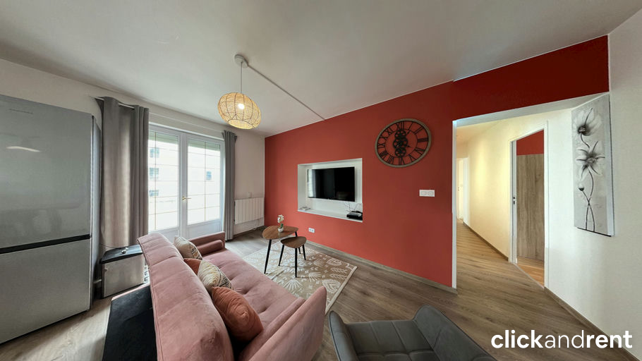 - Séjour lumineux et convivial avec canapé 3 places convertible, TV 50", Box Fibre, table basse