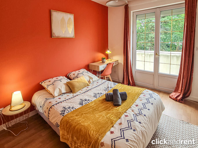 - Lit double 140x190 cm avec matelas de qualité (épaisseur 16 cm, densité 45 Kg/m²)