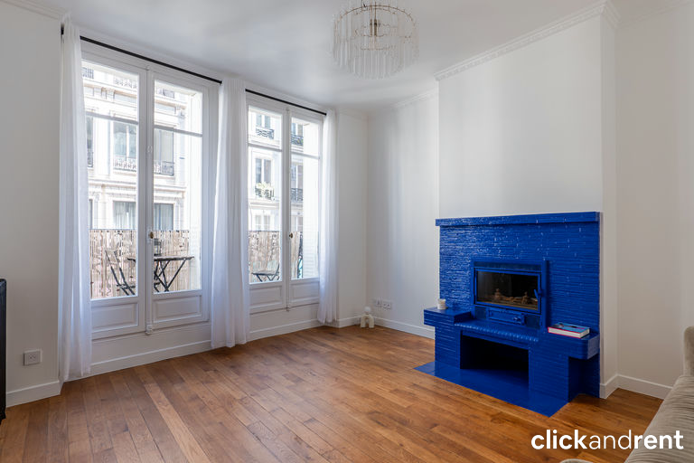 Situé au 2ᵉ étage d’un immeuble de standing avec ascenseur et gardien, il se compose d’une entrée, d’un vaste séjour lumineux ouvrant sur un grand balcon, d’une cuisine entièrement équipée, de deux belles chambres, d’un dégagement avec placards, d’une salle d’eau avec WC ainsi que d’une salle de bains avec WC. L’appartement est traversant, bénéficie d’une belle hauteur sous plafond (3 mètres) et d’un double vitrage assurant confort et calme en plein centre de Paris.